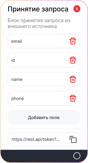 - Создайте блок входящего вэбхука в конструкторе ChatApp и отправляйте на него сообщения из вашей системы